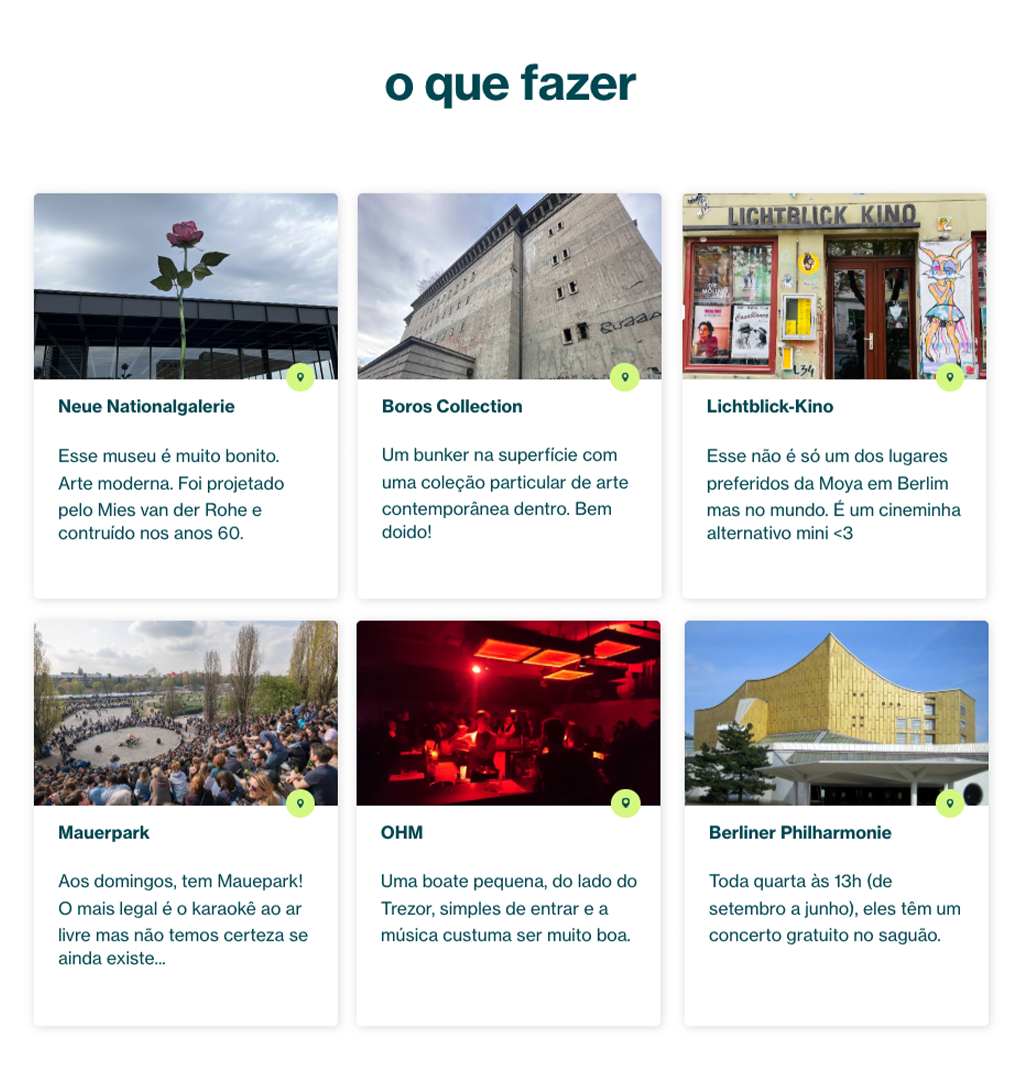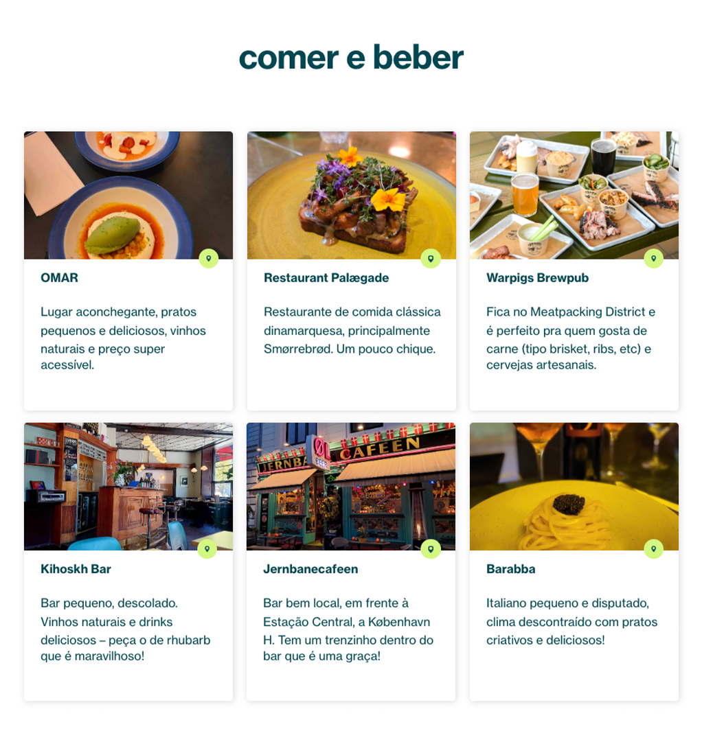A simple and personal travel guide with 6 places to eat & drink and 6 things to do in each city.